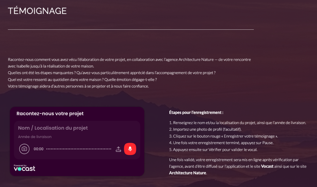 Le site présentait déjà des réalisations, mais il manquait une preuve sociale plus vivante qu’un simple texte: la voix du client, ses émotions, et son retour d’expérience concret.